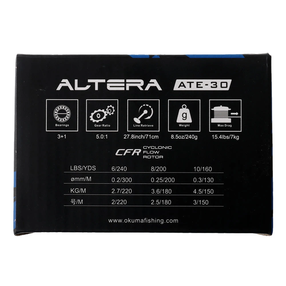 Okuma Altera 30 Spinning Reel features Okuma’s latest body design, present fashion, technology and strength. This reel is equipped with 3BB+1RB stainless steel bearings, CFR (Cyclonic Flow Rotor Technology), and rigid metal handle. Altera is a reel for general purpose and the best choice for the beginners.