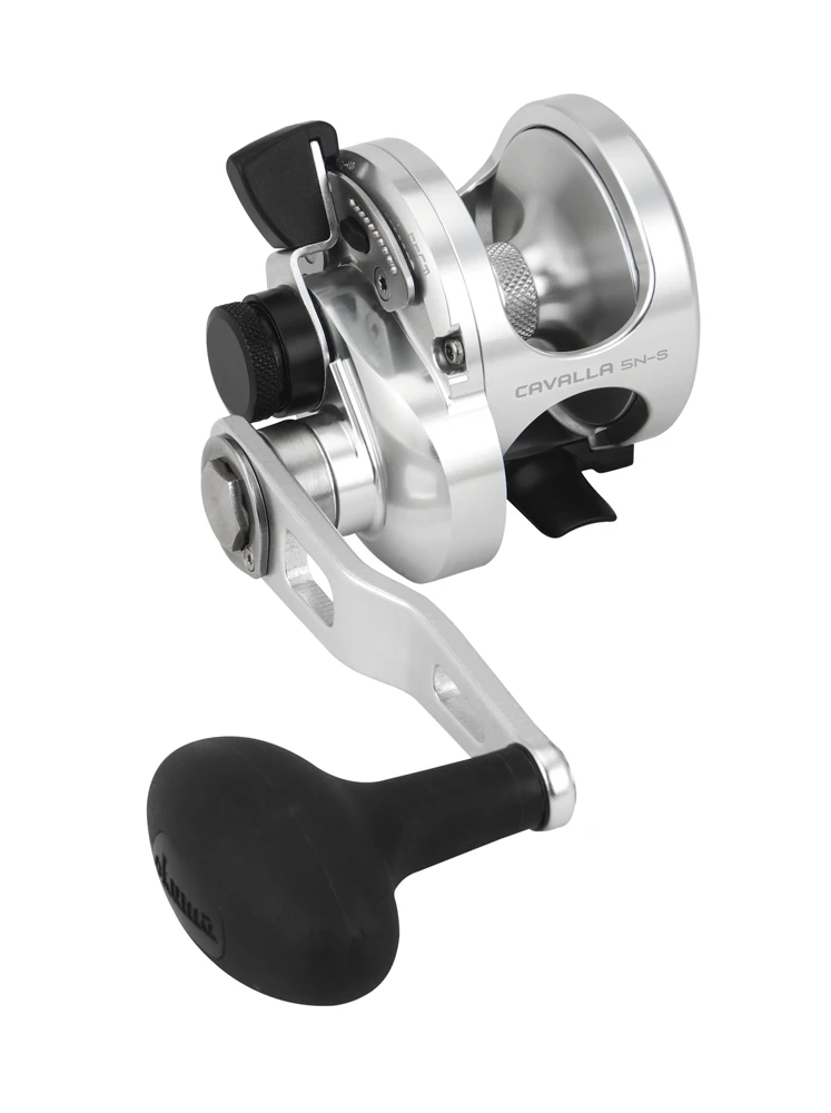 The Okuma Cavalla 5 4BB Narrow High Speed Reel features an advanced design to deliver enhanced power and performance for everyday anglers. This high-speed reel sports a rigid 1-pcs 6061-T6 machined aluminium frame and left side plate construction, carbonite drag system, and 17-4 grade stainless steel main and pinion gears. The top-quality componentry gives the Okuma Cavalla 5 4BB Narrow High Speed Reel incredible overall strength to get you ready for your battles with the fish.