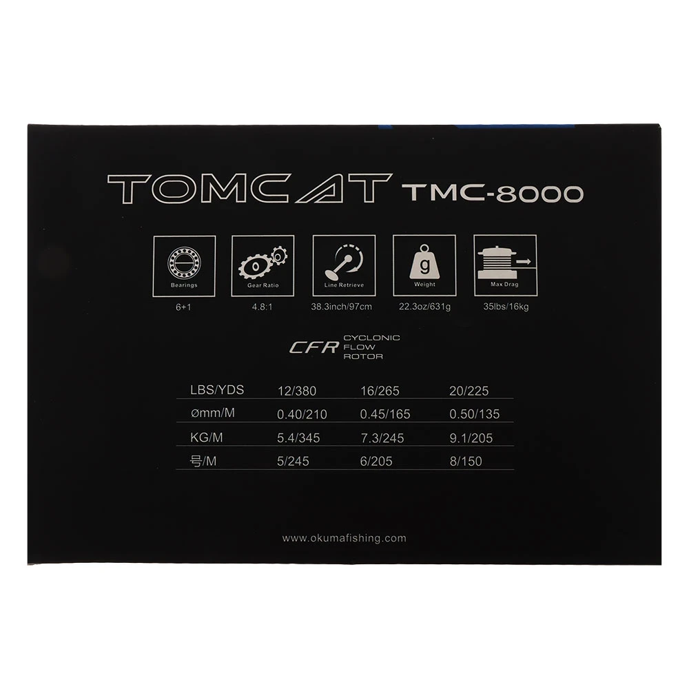 Okuma Tomcat 8000 Spinning Reel Specifications: